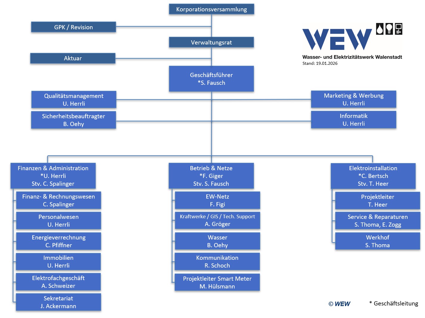 Hier finden Sie das aktuelle Organigramm des WEW.